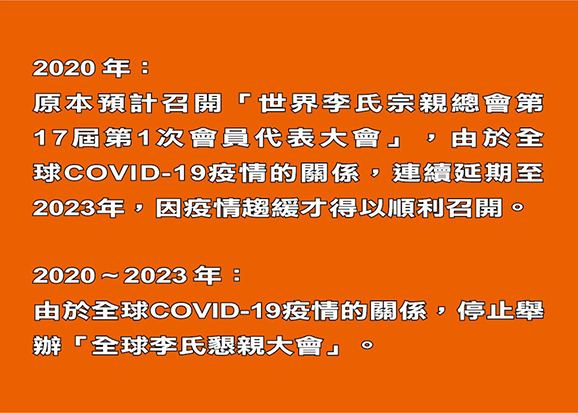 請注意:世界李氏宗親總會並無任何分會! 本會是李氏宗親交流的平台,與全球的李氏宗親團體, 是平等的關係,而非上下從屬的關係,因此沒有任何分會。
